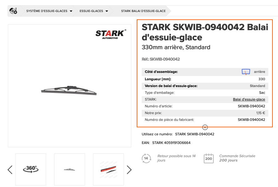 La description du produit peut indiquer que celui-ci est conçu pour un système de freinage précis ou pour un niveau d'équipement de véhicule particulier. Veuillez prêter attention à ces informations, car les spécifications techniques d'une telle pièce de rechange peuvent différer des spécifications de la pièce dont vous avez besoin.