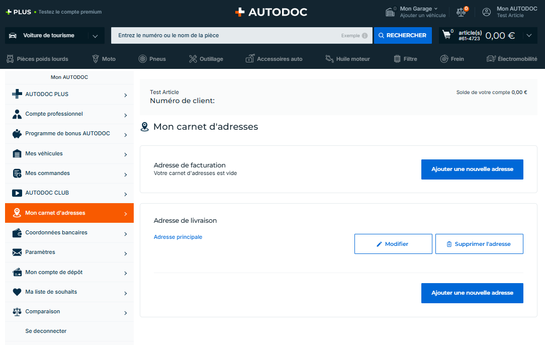 Notez que la dernière adresse que vous avez ajoutée est automatiquement ajoutée à votre panier lorsque vous passez commande, sans que vous ayez à la saisir manuellement.