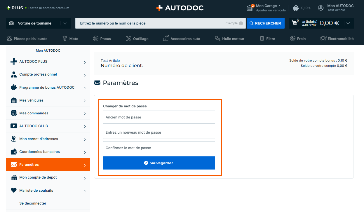 - Allez dans l'onglet Paramètres. Saisissez l'ancien mot de passe et créez un nouveau mot de passe. Sauvegardez les changements.