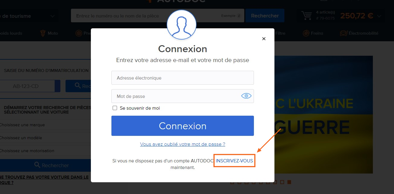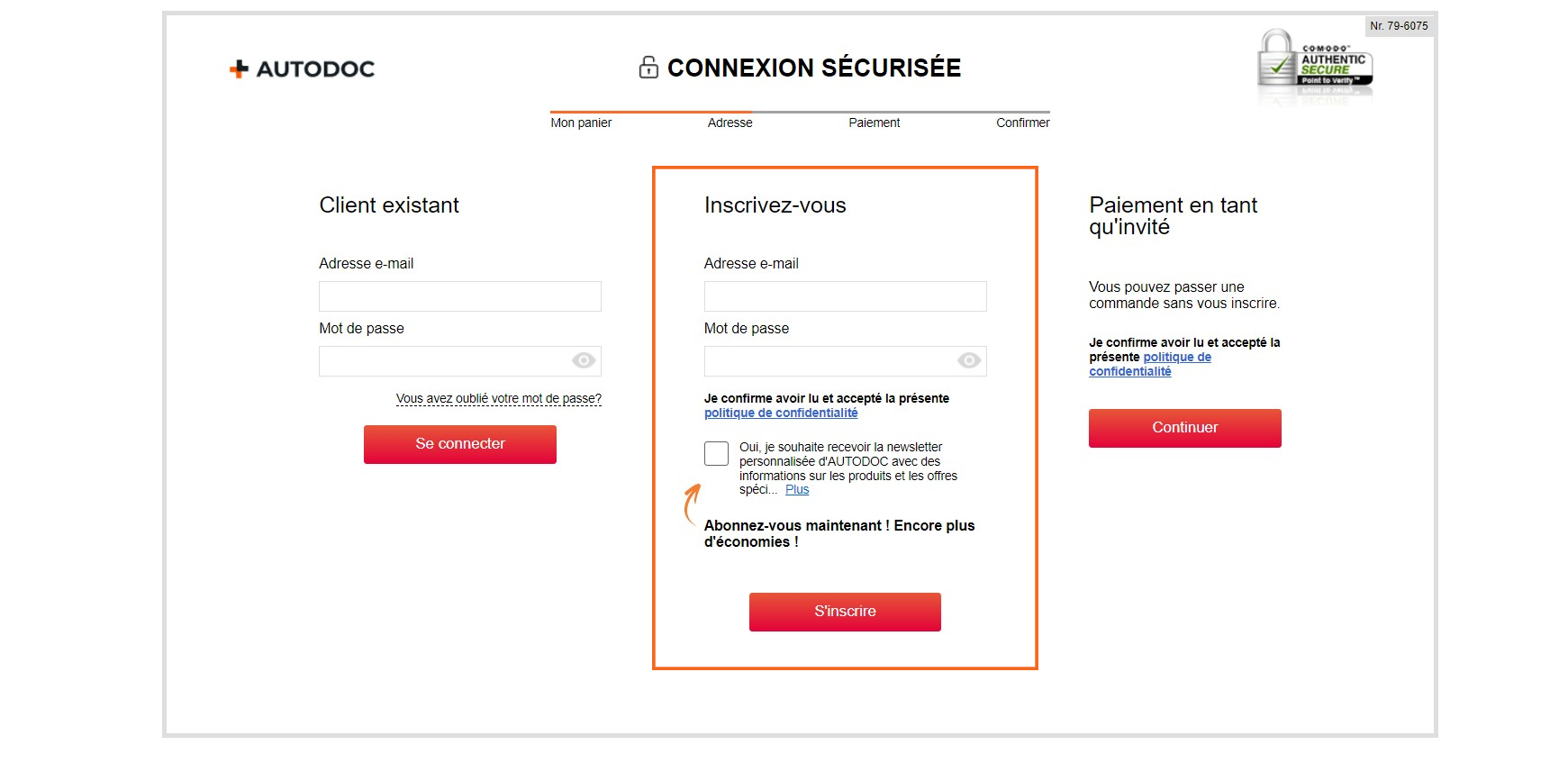 - Cliquer sur le bouton Connexion puis sur INSCRIVEZ-VOUS maintenant avant de passer votre commande.