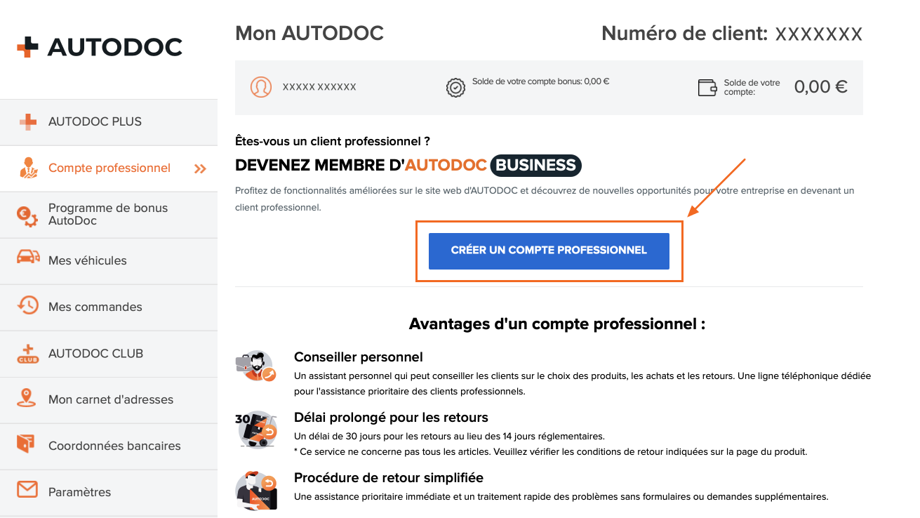- Remplir un formulaire de certification. Vous trouverez celui-ci dans votre compte personnel, dans la section « Compte professionnel ».