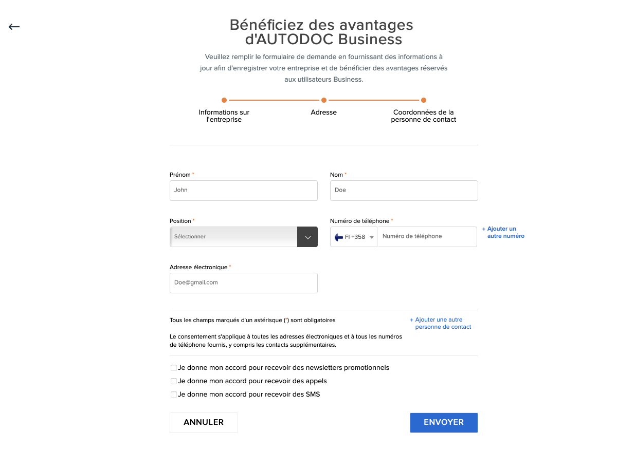 Saisissez les coordonnées de la personne de contact lors de la troisième étape.