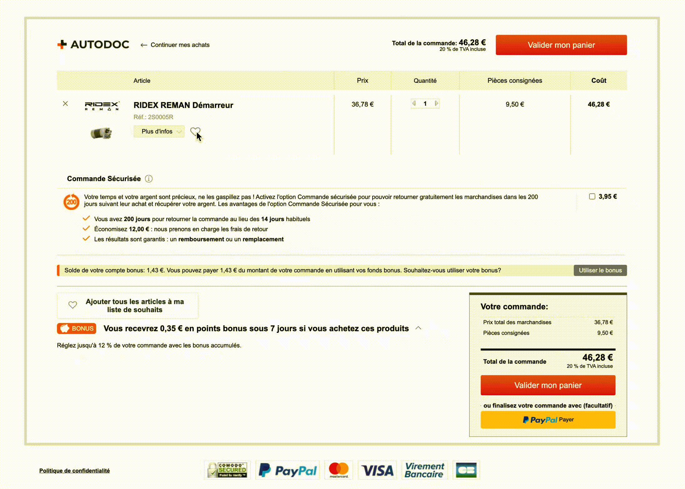 Avant de payer la commande, vous pouvez appliquer l'une des options suivantes :